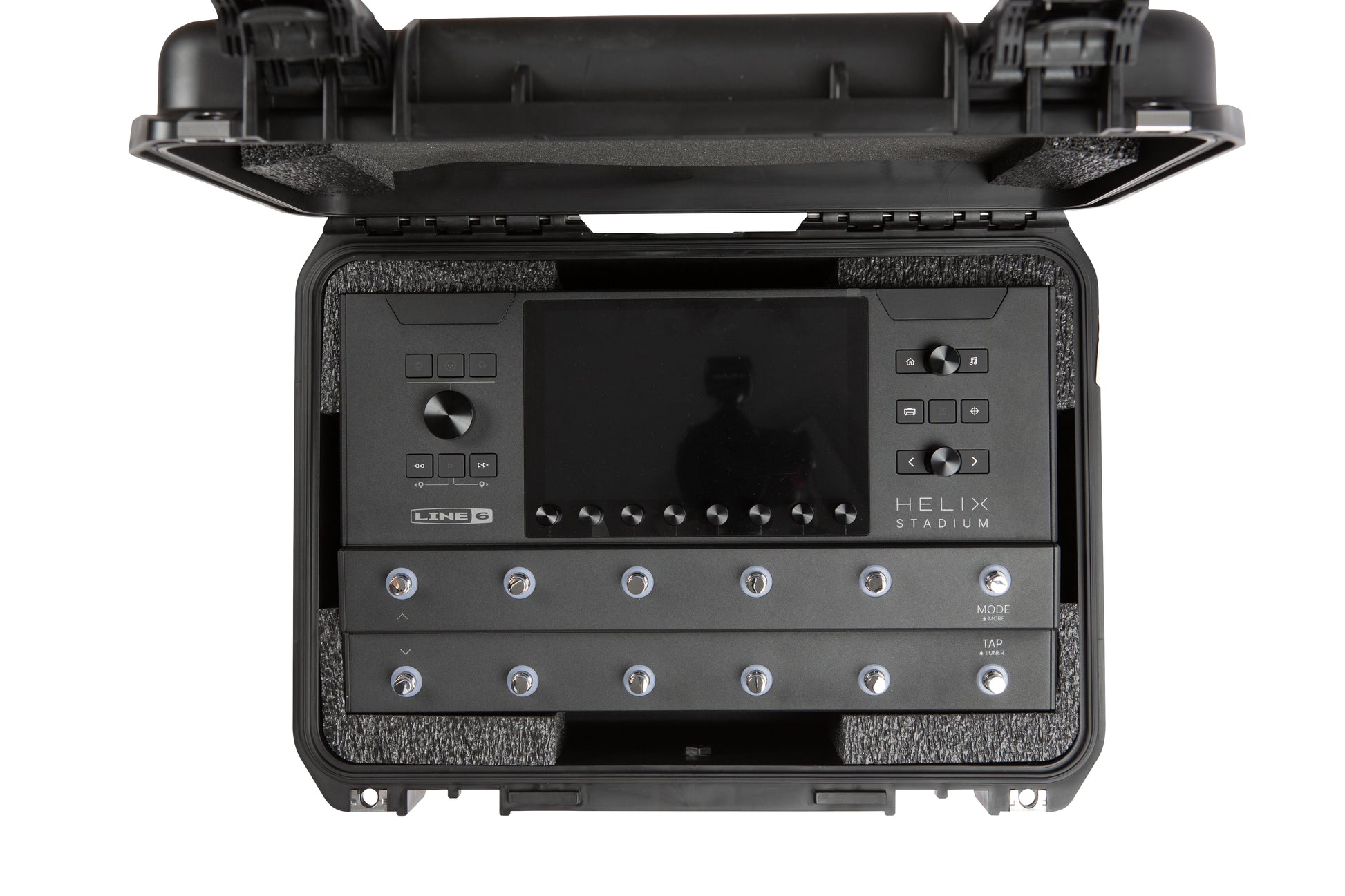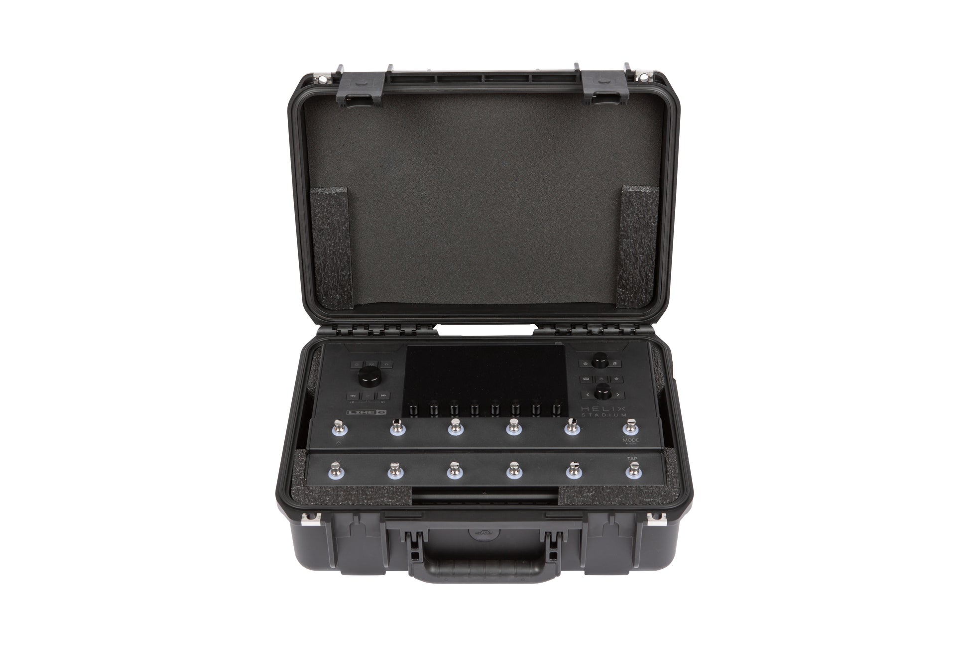 The 3i-1711-6HS features a closed cell foam interior that has been form cut to fit the Line 6 Helix Stadium Amp Modeler/FX Processer. The case interior includes an open cross space below the unit that measures 6.5” x 3.5” x 3” in front (by latches), 16.75" x 4.25” x 2.25” in the middle and 6.5” x 3.5” x 2.25” in the back (near hinges), which is perfect for the power supply, cables, and other accessories.